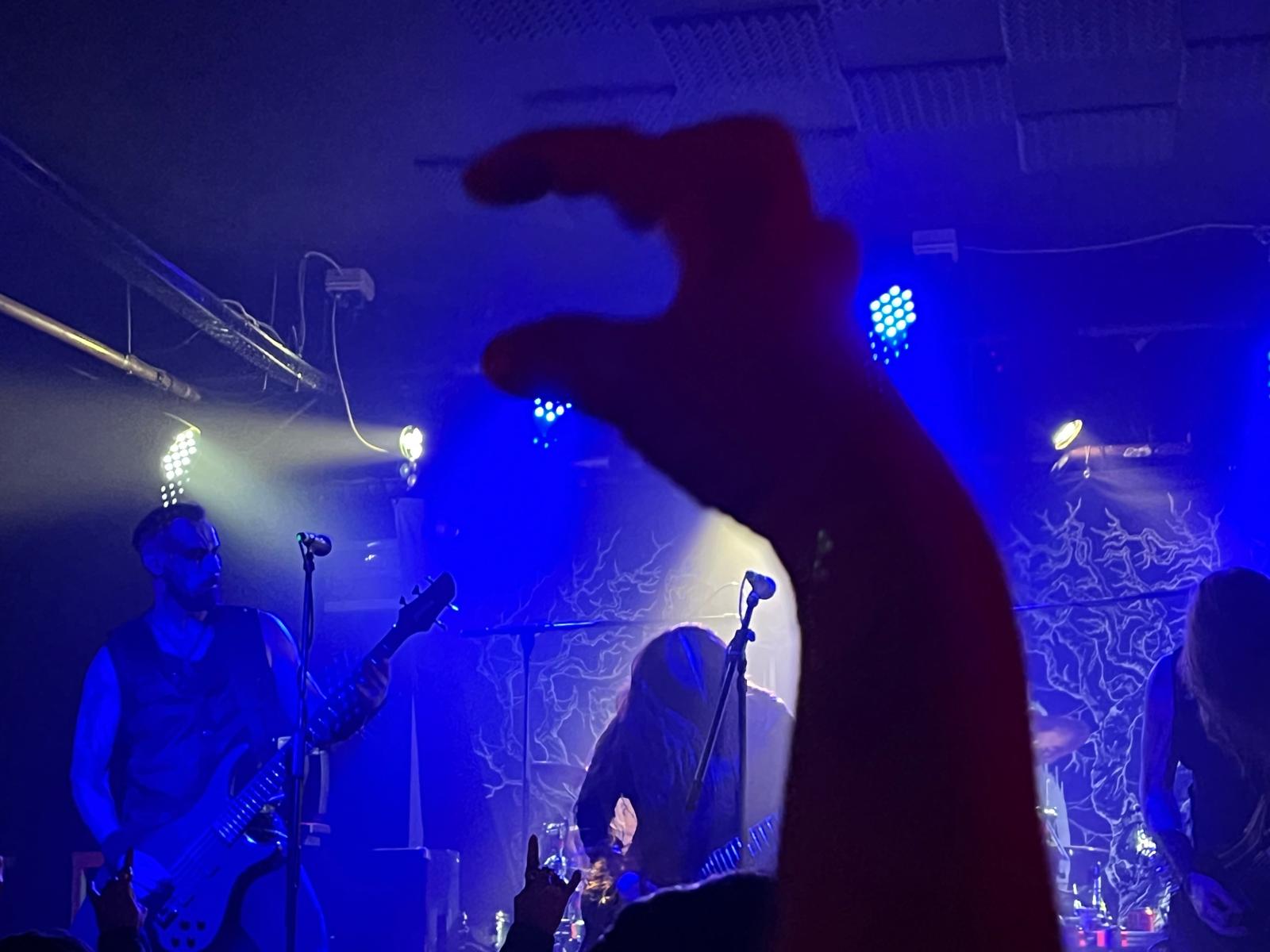 Sin descanso enlazaron “Room 101”, donde ya se apreciaba un sonido extremadamente cuidado: guitarras nítidas a pesar de su densidad, batería demoledora pero controlada y una voz que atravesaba la mezcla con autoridad. Con “Repugnant Human Scum” el público terminó de entregarse; la intensidad subió un nivel y la sala vibró como pocas veces lo hace entre semana.