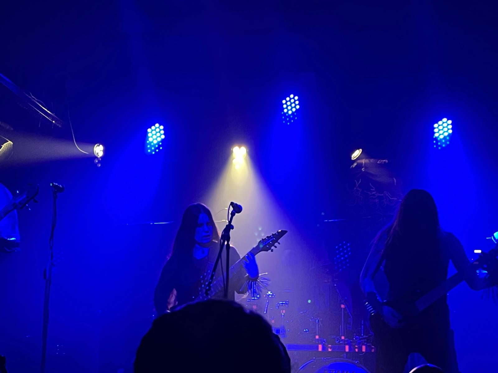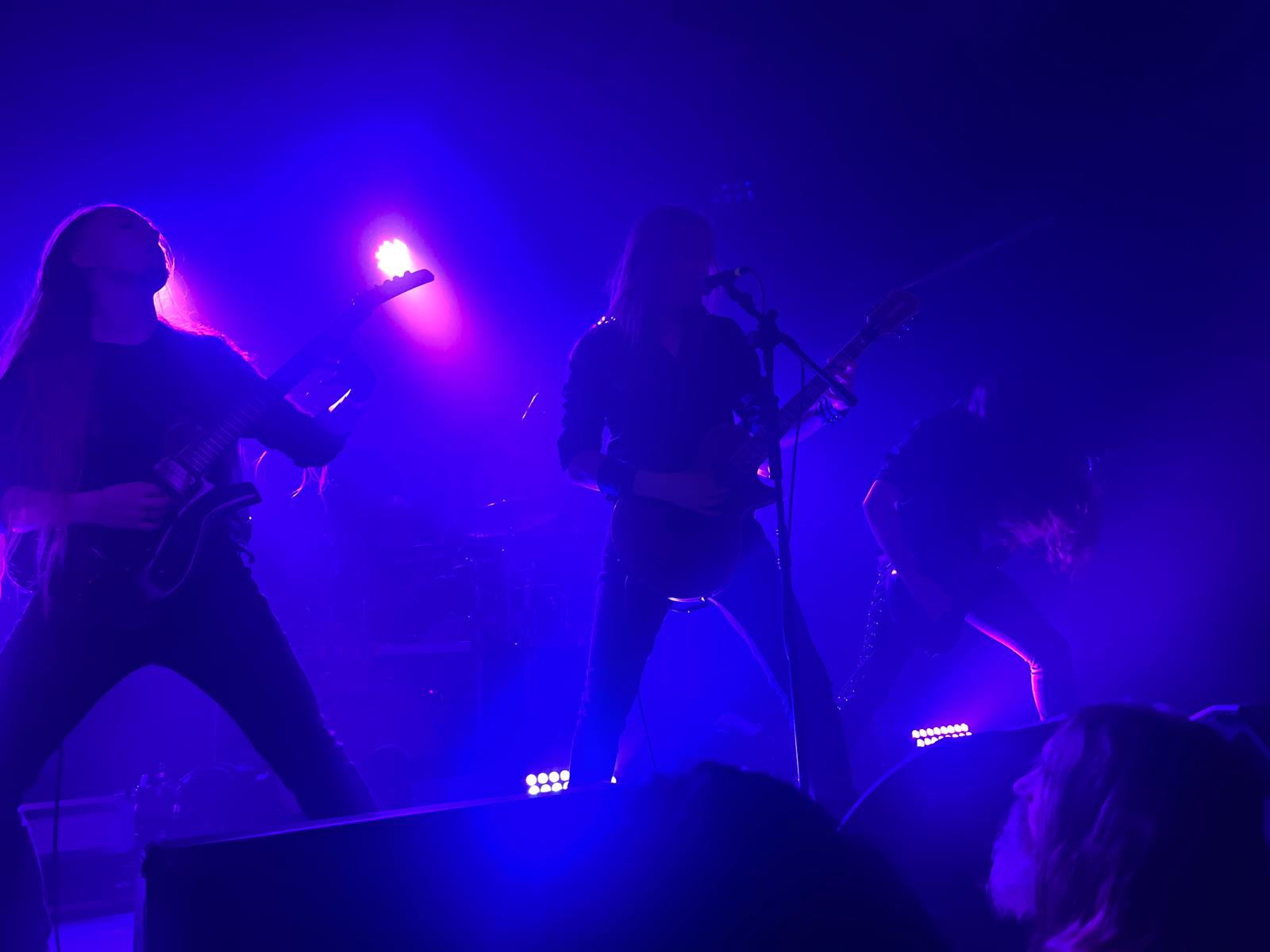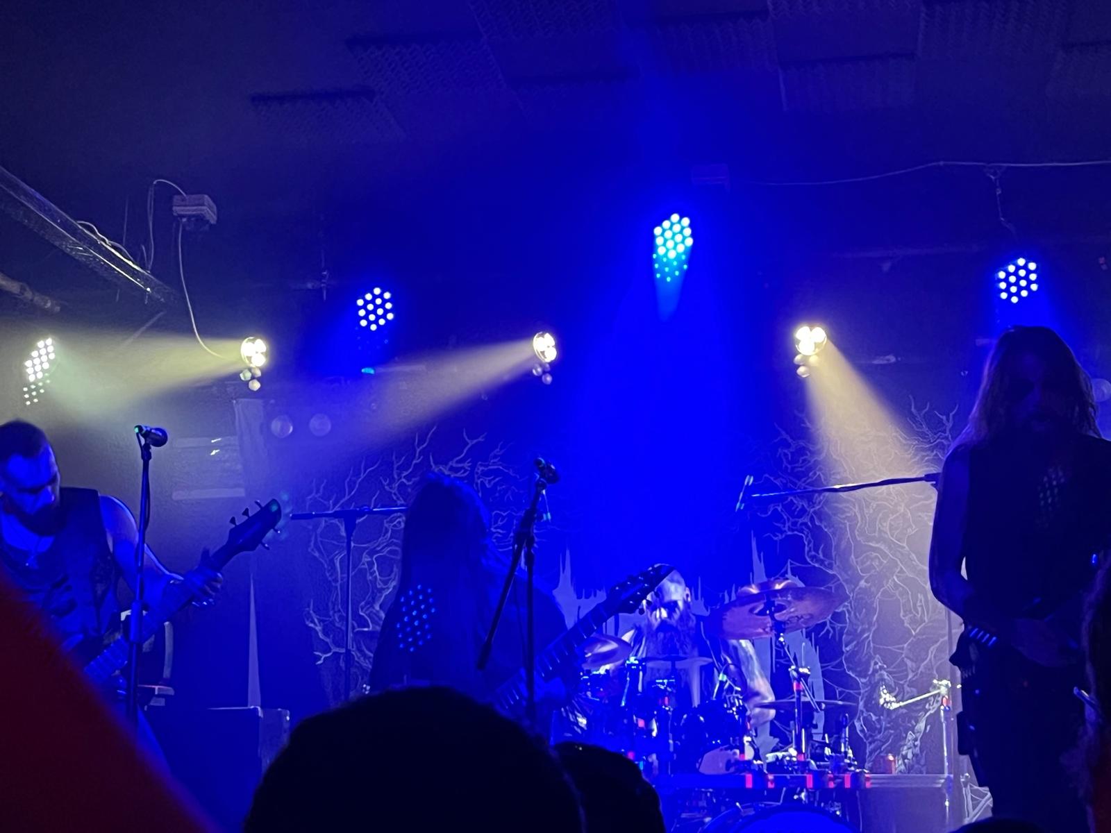 El tramo central del concierto, con “Pest” y “Galdr”, consolidó esa atmósfera fría y pagana que tan bien dominan. Hubo un equilibrio perfecto entre melodía y agresividad, sin caer en la saturación típica de algunas propuestas del género. La Estraperlo respondió con respeto y entusiasmo, dejando claro que el público conocía —o, a partir de ese momento, conocería— a la banda.