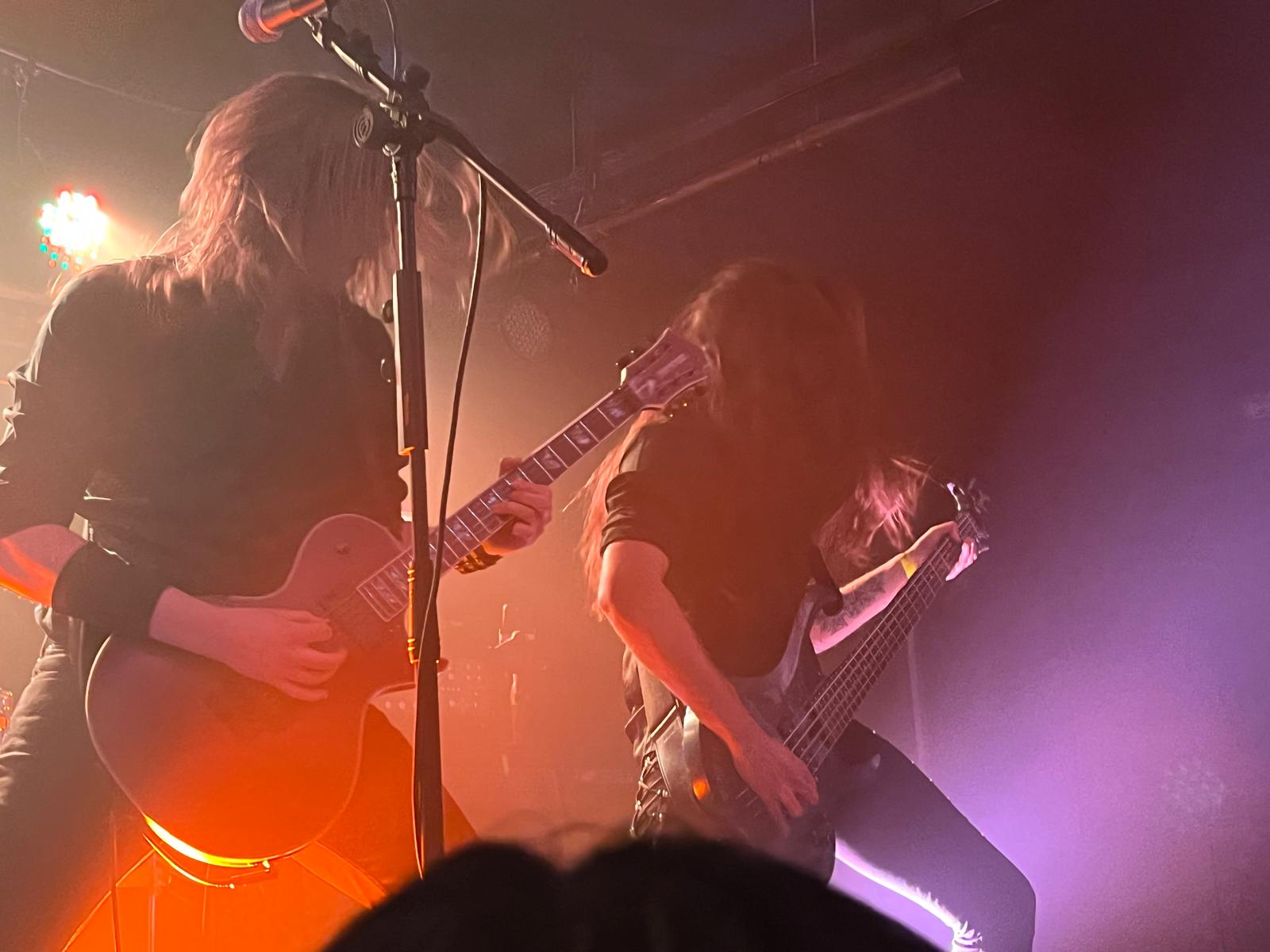 Arrancaron con “Vígr” y “Krigsrop”, una apertura marcial que dejó la sala totalmente activada. La banda sonó sorprendentemente compacta: guitarras afiladas, voces rasgadas sin perder definición y una batería firme que empujaba sin descanso.